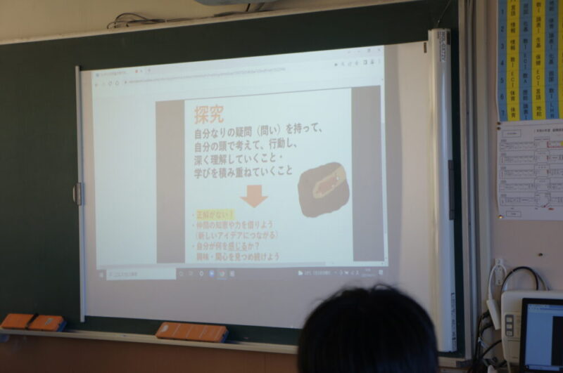 本校は探究学習に力を入れています。生徒自らが世の中の問題を発見し、答えのない