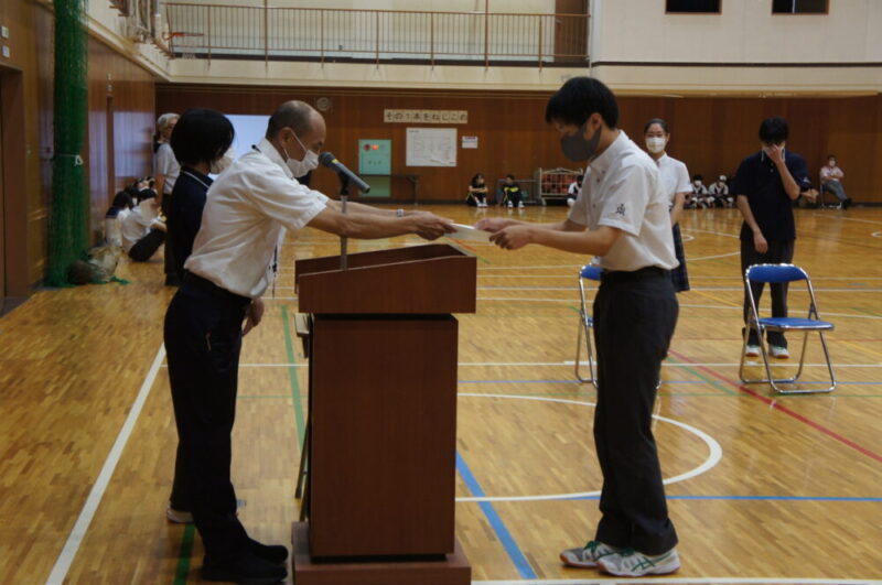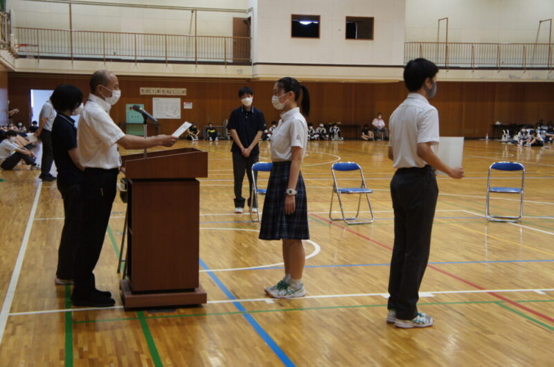 コロナ禍の中、工夫をして体育祭などの様々な学校行事を行ってきた生徒会の皆さん、ありがとうございました!また、新三役も周囲と協力しながら学校を盛り上げてください!期待しています。