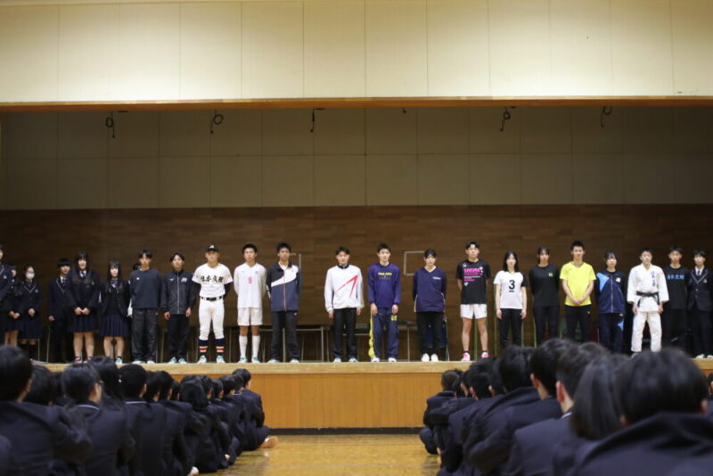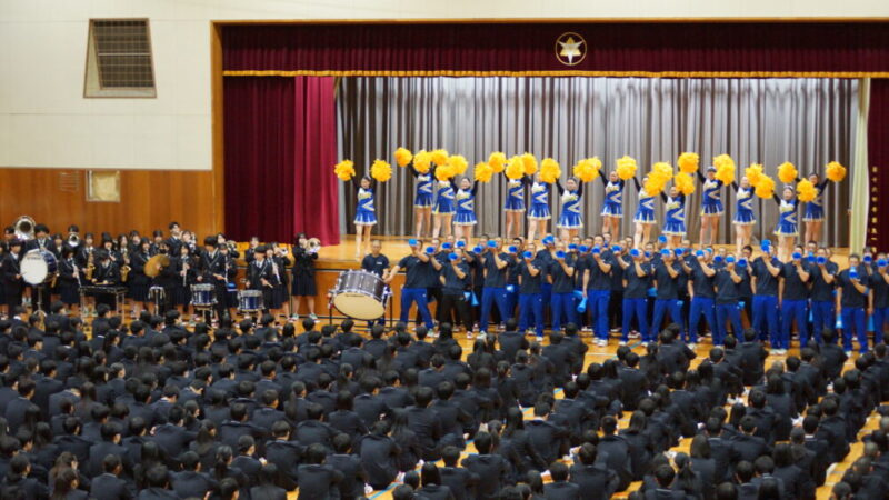 新入生歓迎会では野球部、吹奏楽部、チアダンス部による歓迎パフォーマンスが行われ、