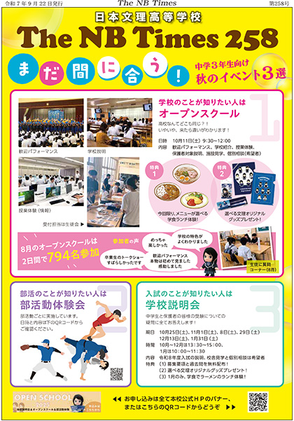 ぜひ本紙とあわせてご覧下さい。ご意見やご要望、ご感想などございましたら「日本文理高等学校入試広報部」までお寄せください。